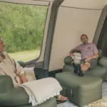 Erhältlich im eleganten Dunkelgrün-Mix, passt dieses aufblasbare Outdoor-Sofa hervorragend zu modernen Camping-Setups, Vanlife-Ausstattung und Outdoor-Lounges.