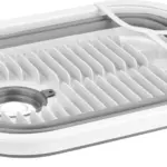 Dank der zusammenklappbaren Konstruktion lässt sich der Geschirrkorb nach dem Abwasch auf ein Minimum reduzieren und passt problemlos in Schränke, Schubladen oder Stauboxen. Hergestellt aus BPA-freiem, lebensmittelechtem PP + TPR, ist der Korb nicht nur umweltfreundlich, sondern auch robust genug für den täglichen Einsatz im Camper. Die geriffelte Oberfläche hält Teller, Tassen und Gläser sicher an Ort und Stelle – auch wenn der Untergrund nicht ganz eben ist.