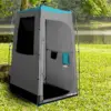 The removable bathtub floor It reliably protects you from moisture, dirt and insects. Over and beyond Can you clean it in a few moments or remove it completely?, so that The sanitary tent is ideally suited as a shower cubicle or mobile toilet tent. At the same time The steep wall construction provides more freedom of movement, while The high entrance and the closable gauze window allow for continuous air circulation. Thus You enjoy a pleasantly dry indoor climate, aside from that Condensation is significantly reduced. Additionally The incoming daylight noticeably improves the atmosphere., through which The tent appears brighter and more inviting.