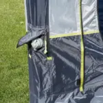 Im Inneren überzeugt das Brunner Tech Trails HC mit durchdachtem Komfort. Alle Fenster sind vollständig verdunkelbar, sodass du jederzeit Privatsphäre hast oder das Zelt kühl halten kannst. Vorder- und Seiteneingang sind mit Moskitogaze ausgestattet – perfekt für warme Sommerabende ohne lästige Insekten. Das Schutzdach an der Vorderseite bietet zusätzlichen Wetterschutz bei Regen oder starker Sonne.