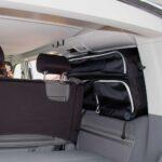 Optimaler Stauraum im VW California Ocean, Coast Beach mit 2er-Sitzbank, erweitert das Platzangebot ungemein! Die Tasche wird einfach zwischen Fensterscheibe und Verkleidung den den beiden hinteren Fenster eingeschoben.
