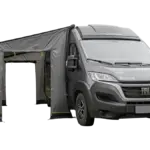 Hergestellt aus robustem Outtex® 4000 Select Polyester mit einer Wassersäule von 4000 mm bietet das Sideroads Awning Room zuverlässigen Schutz vor Regen, Wind und Sonne (UV-Schutzfaktor 30+). Dank seiner Abmessungen eignet es sich besonders für höhere Fahrzeuge wie Fiat Ducato, Mercedes Sprinter oder teilintegrierte Reisemobile mit Markisenbreiten von 375–450 cm und einem Auszug von 250 cm.