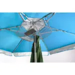 Ein echtes Highlight sind die zusätzlichen Schlaufen an den Streben. Damit kannst du den Schirm bei Wind einfach abspannen und sicher fixieren – perfekt für den Strand oder offene Campingplätze. An der Unterseite findest du außerdem zwei praktische Haken und ein integriertes Netz, ideal für Sonnenbrille, Handy, Schlüssel oder Sonnencreme. Alles griffbereit, nichts liegt im Sand.
