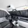 They also play in the summer Thermal mats Ford Tourneo Custom It fully exploits its advantages. The reflective outer layer effectively blocks sunlight, significantly reducing the vehicle's heat buildup. This keeps the climate in the cab stable and considerably more comfortable, even when the van is parked in the sun. The black inner layer provides complete blackout – ideal for those who sleep in the vehicle or want to remain completely undisturbed.