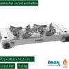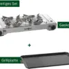 Two-burner multi-functional stove with an additional grill plate for convenient cooking, ideal for campers and motorhomes. The cast aluminum grill plate, smooth and ribbed, is suitable for a variety of dishes. Cartridge operation allows for easy and portable use.
