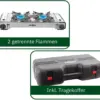The Devil Double Grill The Brunner is a powerful double gas stove, ideal for outdoor activities and campervans. It features two 2.2 kW burners, integrated piezo ignition, and a die-cast aluminum griddle with a non-stick coating (smooth and ribbed). Thanks to its stainless steel cooking surface and precise flame control, it's perfect for preparing multiple meals simultaneously. Compatible with two gas cartridges, it offers convenience and portability for your outdoor kitchen.