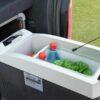- Alternativa economica all'allestimento fisso del camper - Veicolo utilizzabile in qualsiasi momento grazie alla rapida rimozione del box da campeggio - Box da campeggio completamente smontabile e quindi ideale per il rimessaggio - Il box da campeggio funge anche da prolunga letto per la panca/divano letto. Il Camping Box L-CM è dotato di un cassetto estraibile per la cucina a sinistra, comprensivo di lavello pieghevole, tanica per acqua potabile da 12 litri con rubinetto, fornello a gas a 1 fuoco su ripiano pieghevole, mobiletto pieghevole con 4 contenitori per alimenti, barattoli di plastica, cassetto per posate e 2 cassetti. L'equipaggiamento standard comprende 2 vani portaoggetti centrali; dietro di essi c'è spazio per un WC portatile da campeggio o 1 contenitore poco profondo + 1 contenitore profondo (opzionale). Il frigorifero a compressore da 16 litri (accessorio) si trova nel cassetto estraibile a destra. È alimentato dall'impianto elettrico a 12V del veicolo ed è rimovibile. Con il suo cuscino per dormire (opzionale, da selezionare separatamente), estende la zona notte della panca a 3 posti originale nella parte posteriore. Questo elimina la necessità di utilizzare il VW Multiflexboard per creare un letto. Il box si fissa alle guide del pianale del veicolo o agli occhielli di ancoraggio nel vano bagagli. Le maniglie laterali ne facilitano il trasporto. Non sono necessarie modifiche al veicolo per l'installazione.Dimensione del prodotto: L118 X P80 X H47 cmAmbito di fornitura: Reimo box da campeggio L-CM