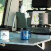 Il Calicook offre un fornello a gas portatile, un lavello in acciaio inox con miscelatore e un impianto idrico con taniche da 10 litri per acqua dolce e acqua di scarico, un cassetto estraibile per un grande frigorifero portatile a compressore da 26 litri (opzionale) e spazio di stivaggio. Il pratico tavolo pieghevole e il ripiano estraibile trasformano la zona cucina in un tavolo per la colazione per tutti. L'ingegnoso paraspruzzi protegge l'imbottitura del sedile del conducente. Grazie alla regolazione longitudinale, ogni conducente può sedersi comodamente e rilassato. Naturalmente, l'intera lunghezza del letto rimane disponibile anche con il blocco cucina installato. Per l'uso quotidiano, il Calicook può rimanere a casa; può essere rimosso in un attimo senza attrezzi. Naturalmente, il Calicook può essere utilizzato anche all'esterno del veicolo (ad esempio, nella veranda o sotto la tenda).