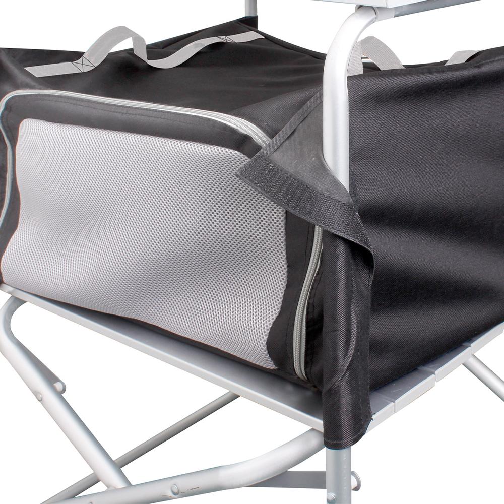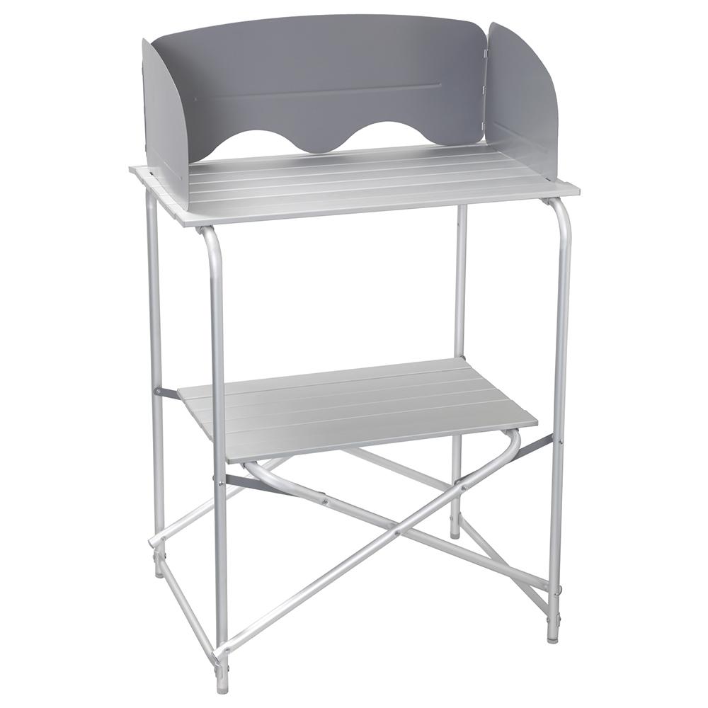 Grazie al design compatto e pieghevole Il Brunner Snack Basic è pronto all'uso in tempi rapidissimi. Scomparto portaoggetti rimovibile in poliestere resistente Può essere riempito a casa con utensili da cucina, stoviglie o cibo. Questo lo rende anche una soluzione di trasporto intelligente. Una volta in campeggio, il vano portaoggetti viene semplicemente inserito nel robusto Telaio in metallo verniciato a polvere Collegato, fatto.