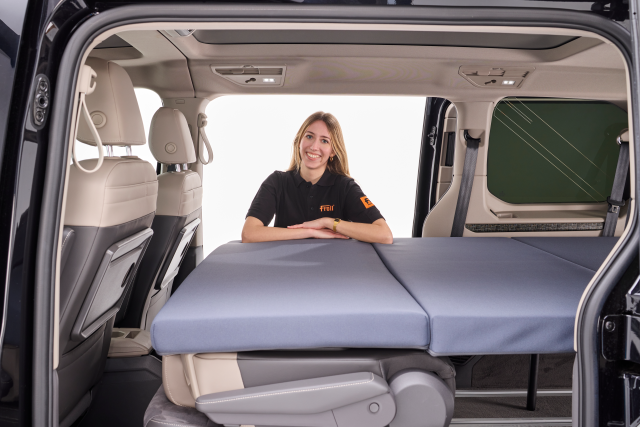 Con il Modulo letto pieghevole per il Volkswagen T7 Multivan Il tuo autobus si trasformerà in un attimo in un comodo mini-camper. Che si tratti di una gita improvvisata nel fine settimana, di una breve vacanza in montagna o di una notte rilassante in riva al lago, questo Modulo letto in 3 parti Ti offre esattamente il comfort che desideri quando sei in movimento.