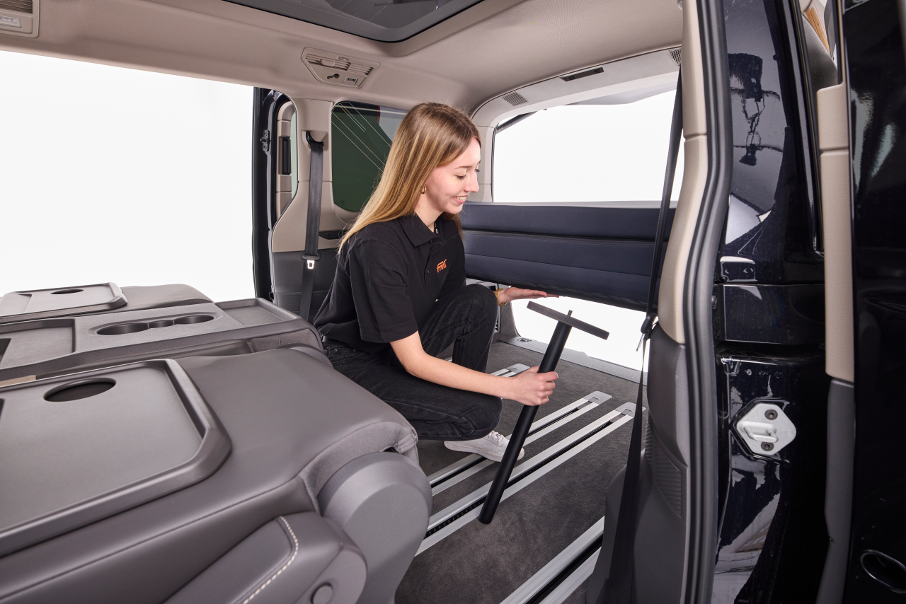 A Modelli VW T7 Multivan a 5 posti Potere piedini di supporto opzionali Possono essere utilizzati. Offrono ulteriore stabilità e una superficie perfetta, indipendentemente dalla configurazione interna. Questo rende il modulo letto adatto sia per gite improvvisate che per escursioni in campeggio regolari.