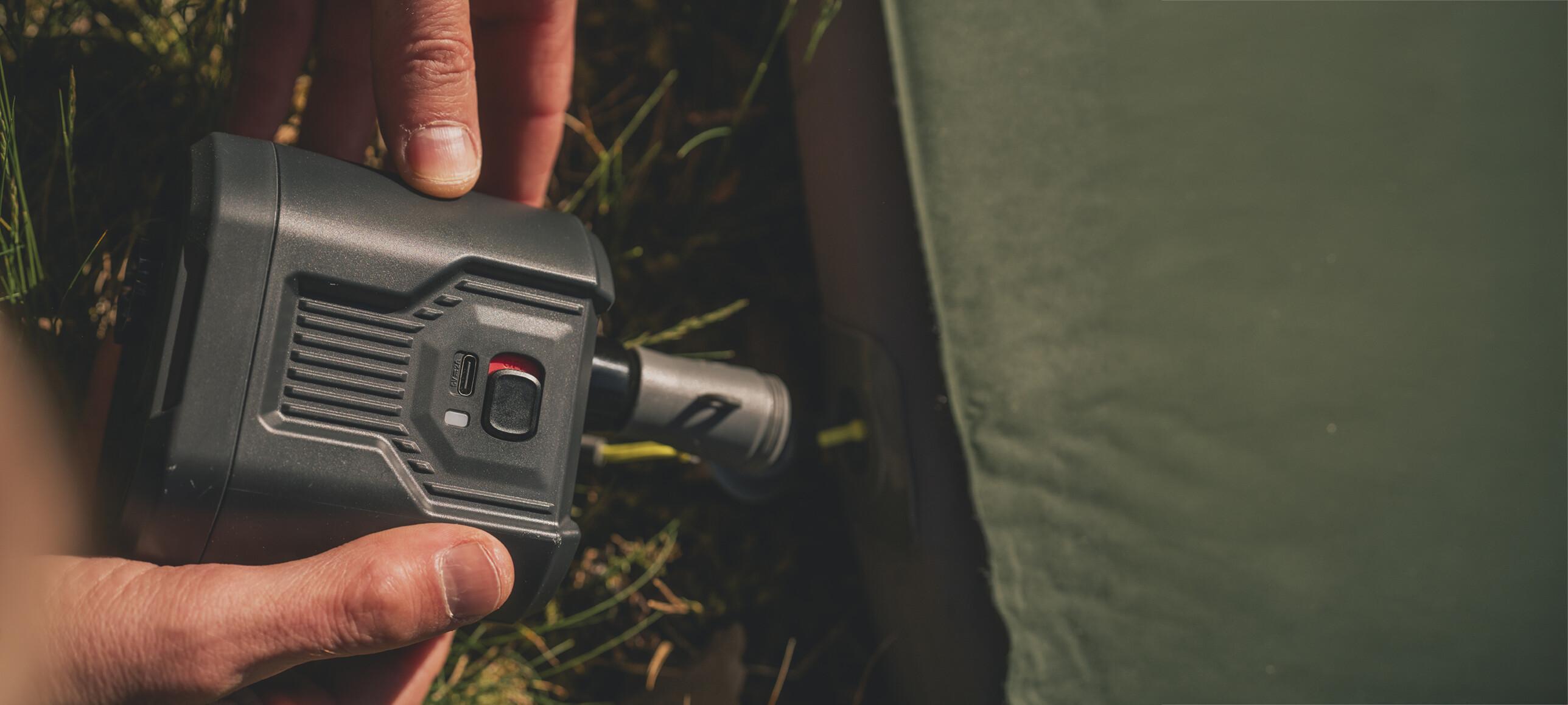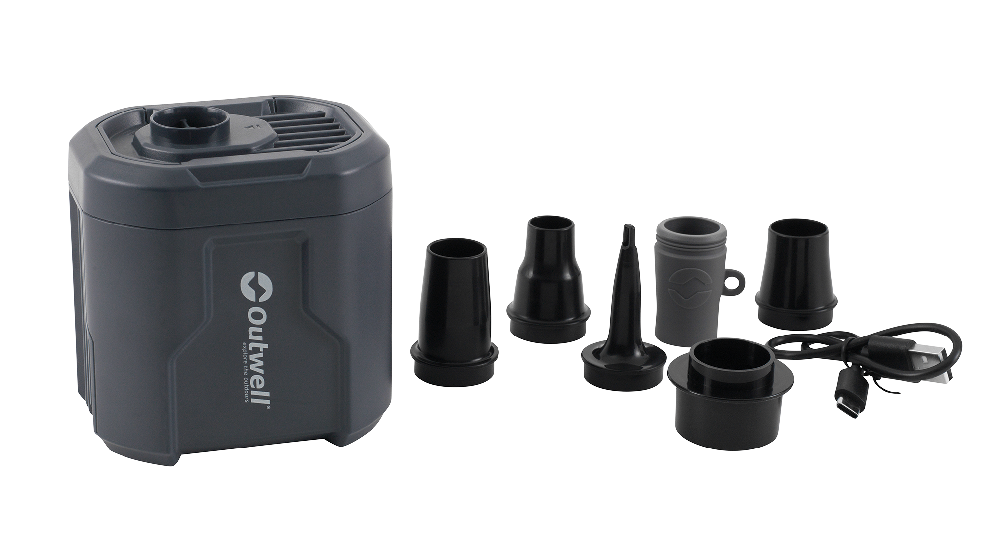Pompa, 5 adattatori per valvole, adattatore Outwell FHF, custodia per il trasporto, cavo di ricarica USB-C