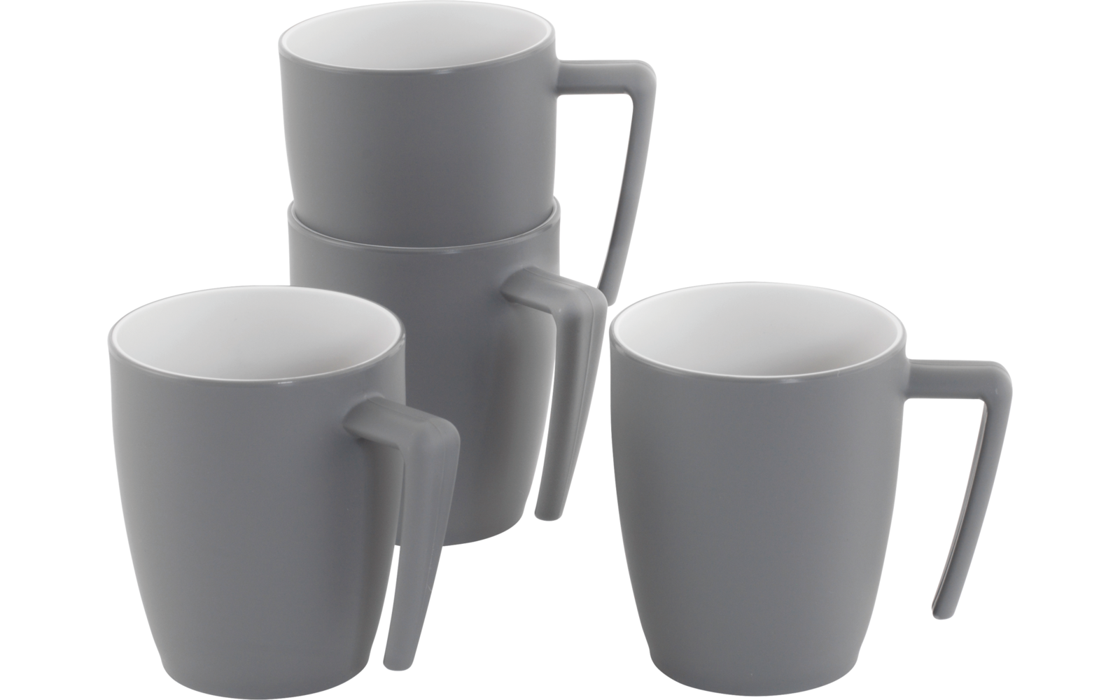 Robusto e moderno Set di tazze da campeggio Per 4 persone. Resistente alla rottura, facile da pulire e lavabile in lavastoviglie: perfetto per il campeggio, la vita in camper e le avventure all'aria aperta.