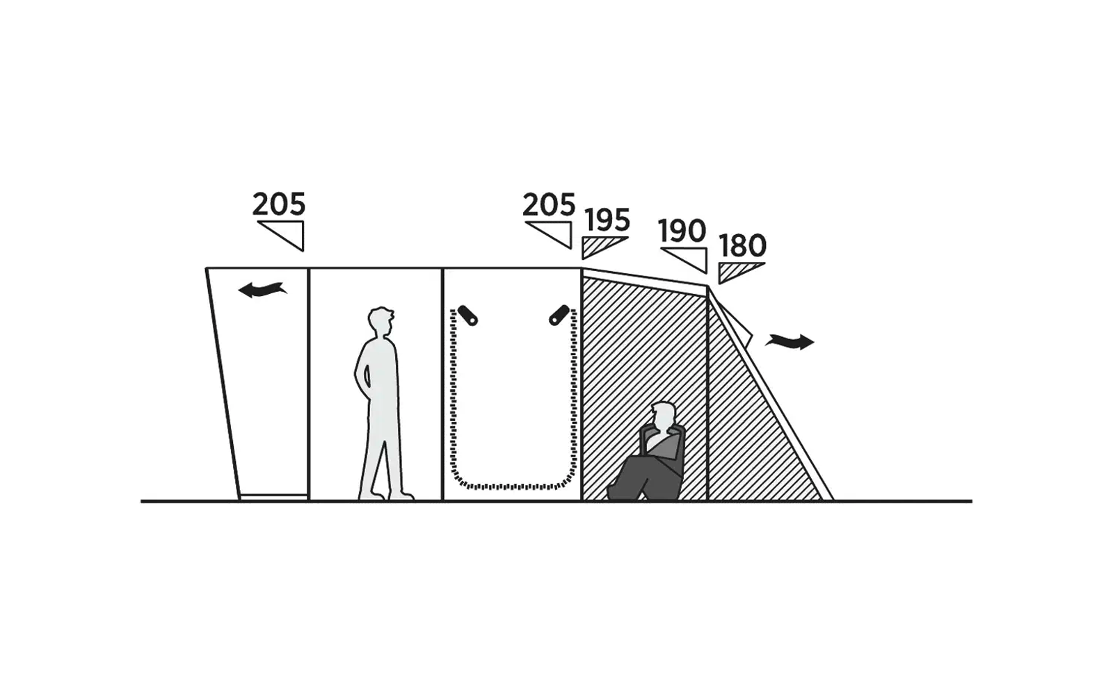 Come un classico Tenda a tunnel per 6 persone Lo Skarvan 6 offre un'ampia zona giorno con una comoda altezza per stare in piedi. Qui potrete cucinare, giocare o semplicemente rilassarvi in compagnia quando fuori piove. Grazie all'ingresso anteriore protetto dalla pioggia, l'interno rimane asciutto, anche nelle tipiche condizioni meteo del campeggio.