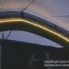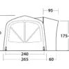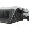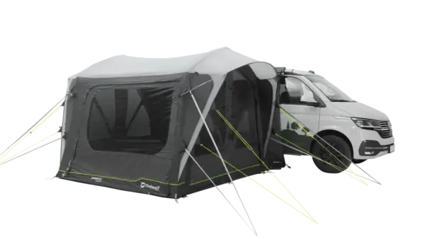 Ein besonderes Highlight ist das integrierte Outwell Light System (Stromquelle separat erhältlich), das drinnen wie draußen für stimmungsvolle Beleuchtung sorgt. Optional lässt sich eine Schlafkabine einhängen, sodass bis zu vier Personen bequem Platz finden. Für höhere Campervans wie Kastenwagen ist zudem eine Schleuse in Hoch-Ausführung separat erhältlich.
