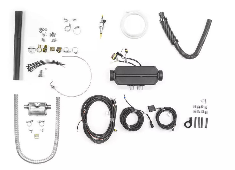 Die Autoterm Air 2D kann im Frischluft- oder Umluftbetrieb genutzt werden und unterstützt ein 60-mm-Warmluftsystem. Der Standard-Einbausatz ist bereits enthalten – inklusive leiser TH11-Kraftstoffpumpe, Abgasschalldämpfer und aller nötigen Montageteile.