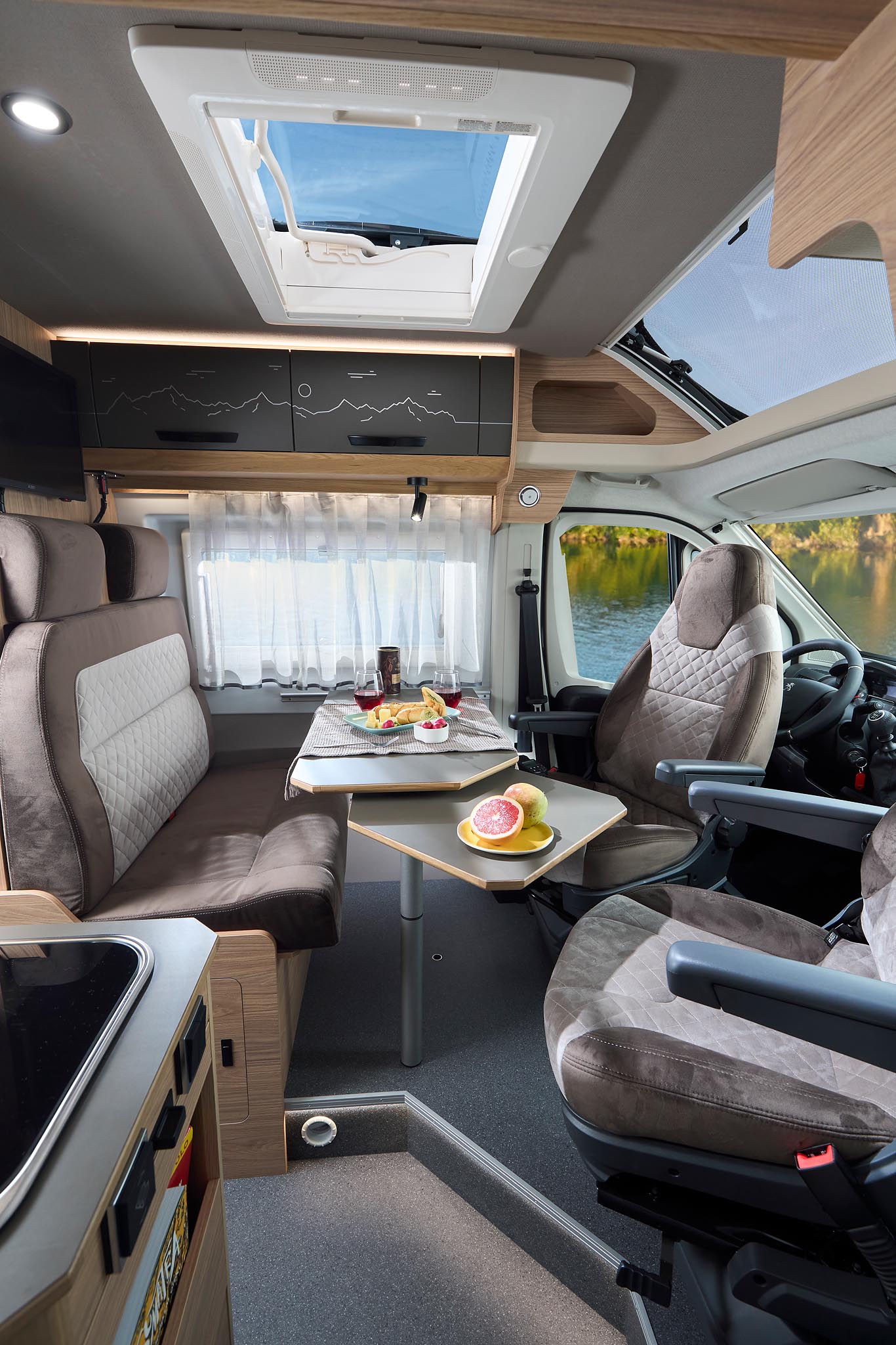 Der ausziehbare Tisch in der Dinette ist ein echtes Highlight: flexibel, stabil und perfekt für Essen, Arbeiten oder entspannte Abende. In Kombination mit der angenehmen LED-Beleuchtung entsteht ein helles, modernes und wohnliches Ambiente – auch an grauen Tagen.