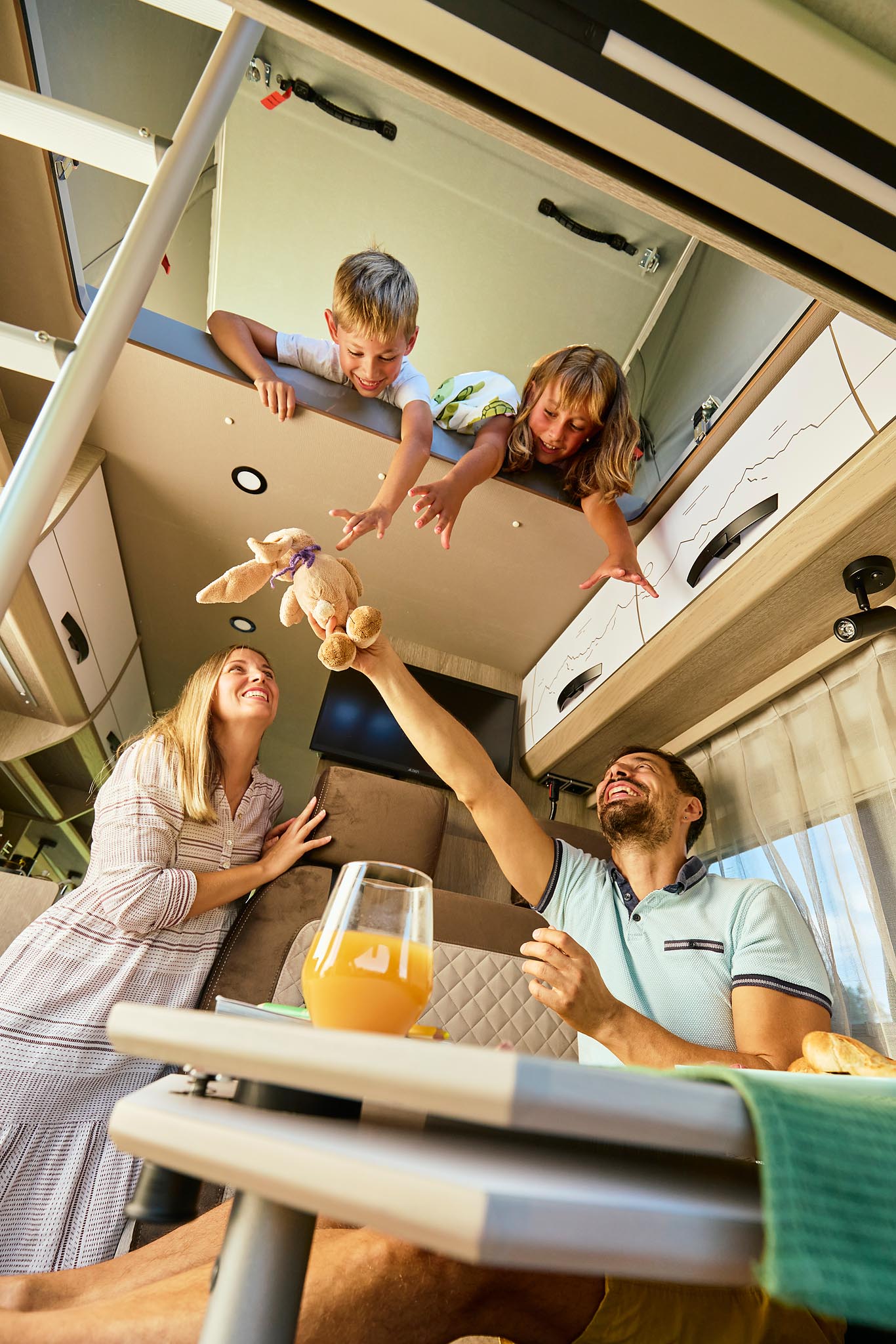 Das Aufstelldach erweitert den Innenraum spürbar und schafft zusätzliche Freiheit – ideal für alle, die mehr Luft, mehr Raumgefühl oder zusätzliche Schlafoptionen schätzen. Zahlreiche Schränke, Ablagen und eine hochwertige Verarbeitung sorgen dafür, dass alles seinen festen Platz hat – klapperfrei und robust.