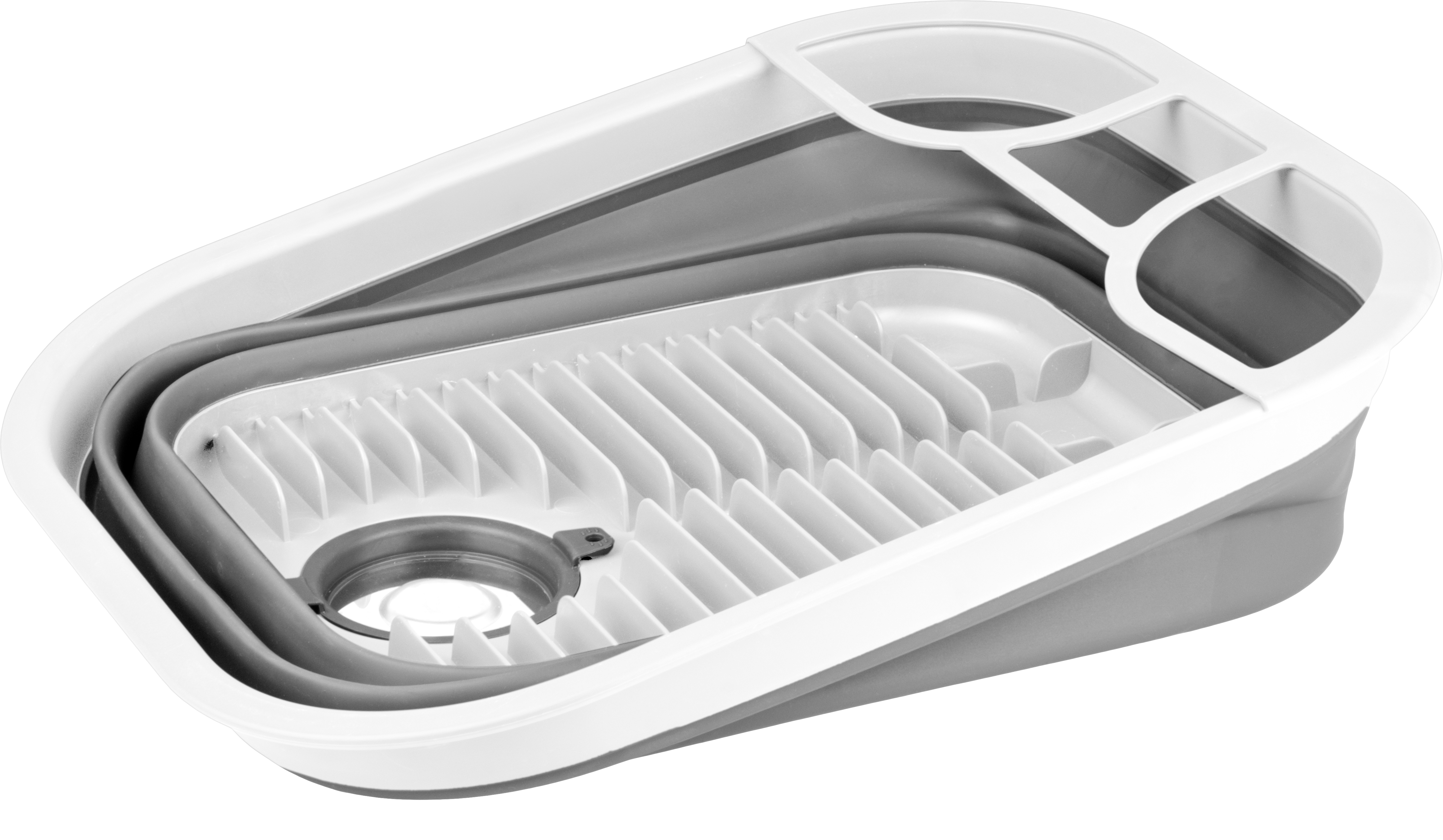 Dank der zusammenklappbaren Konstruktion lässt sich der Geschirrkorb nach dem Abwasch auf ein Minimum reduzieren und passt problemlos in Schränke, Schubladen oder Stauboxen. Hergestellt aus BPA-freiem, lebensmittelechtem PP + TPR, ist der Korb nicht nur umweltfreundlich, sondern auch robust genug für den täglichen Einsatz im Camper. Die geriffelte Oberfläche hält Teller, Tassen und Gläser sicher an Ort und Stelle – auch wenn der Untergrund nicht ganz eben ist.