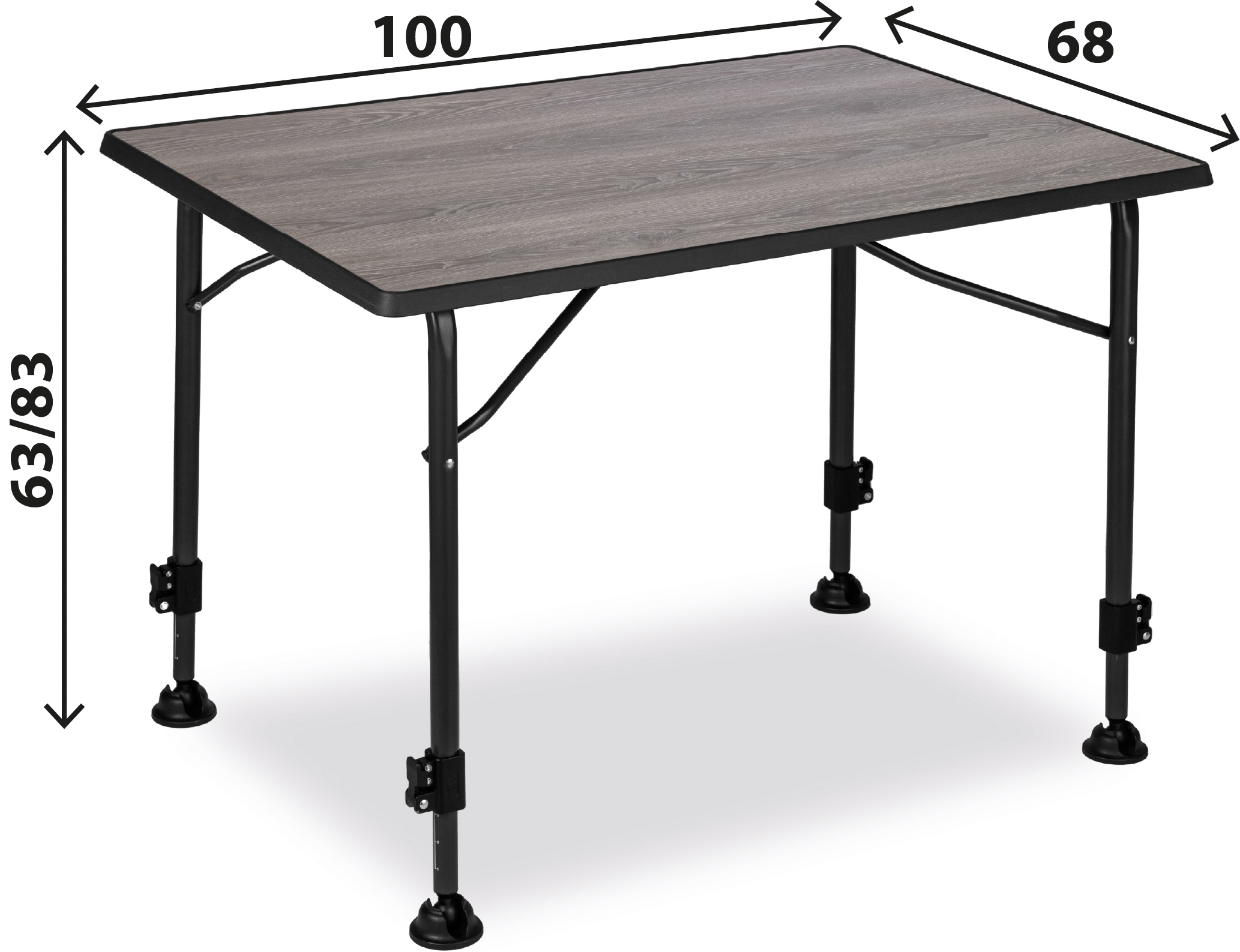 Dank der pulverbeschichteten Stahl-Teleskopbeine steht der Brunner Linear Greywood Campingtisch jederzeit bombenfest. Die stufenlose Höhenverstellung von 63 bis 83 cm macht ihn vielseitig einsetzbar – egal ob zum gemütlichen Frühstück, als Koch- oder Arbeitstisch oder für lange Abende unter der Markise. Trotz seiner Robustheit lässt sich der Tisch flach zusammenklappen und mit nur 8 cm Höhe platzsparend verstauen – perfekt für Vans, Kastenwagen und Wohnmobile.