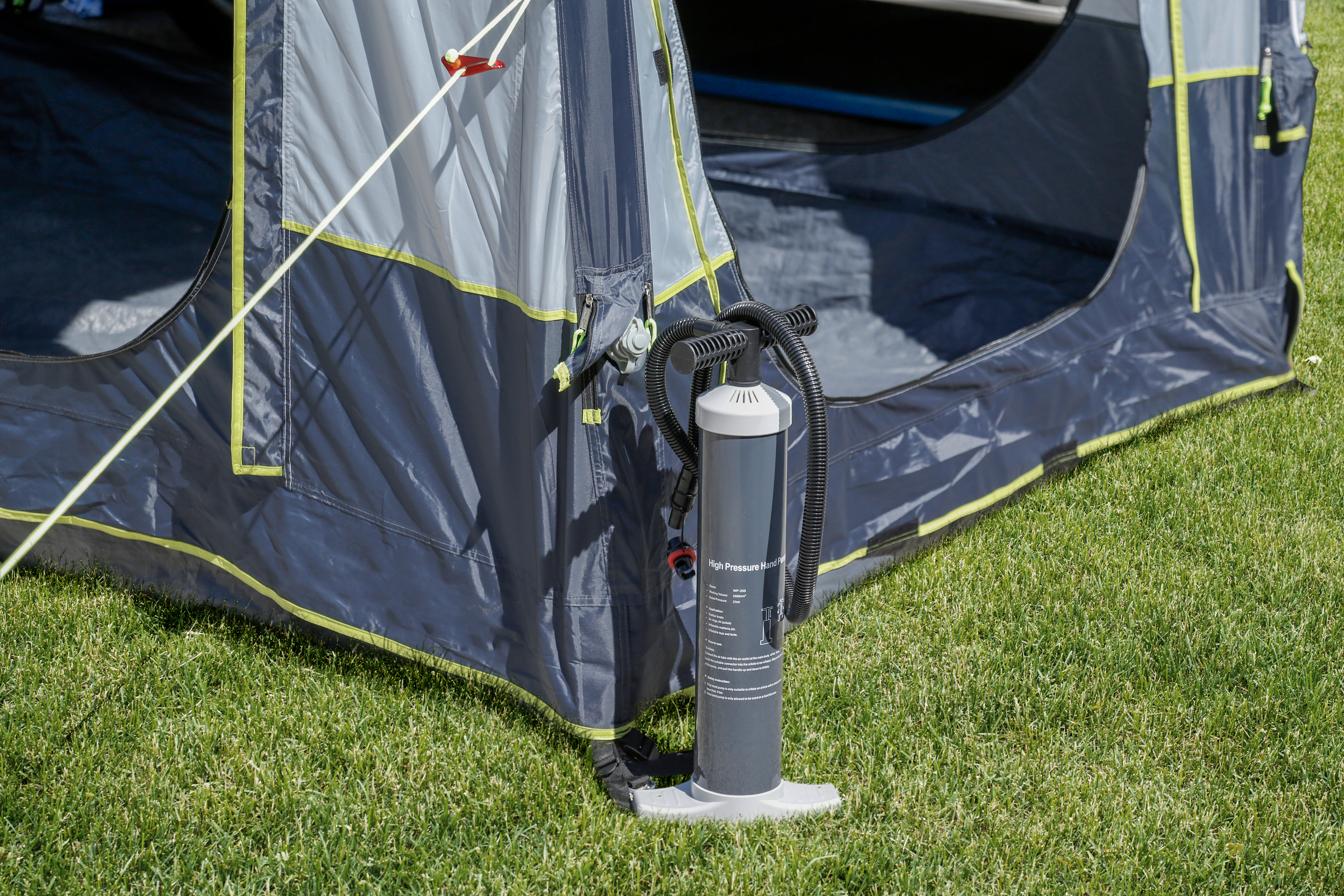 Mit einer Anschlusshöhe von 245 bis 280 cm eignet sich dieses Busvorzelt für viele gängige Vans und Camper. Im Lieferumfang ist bereits alles enthalten: Doppelhubpumpe, Schleusenstab, Spannleinen, Heringe, Montagematerial und Packtasche. Aufstellen, einziehen, wohlfühlen – so einfach kann Camping sein.