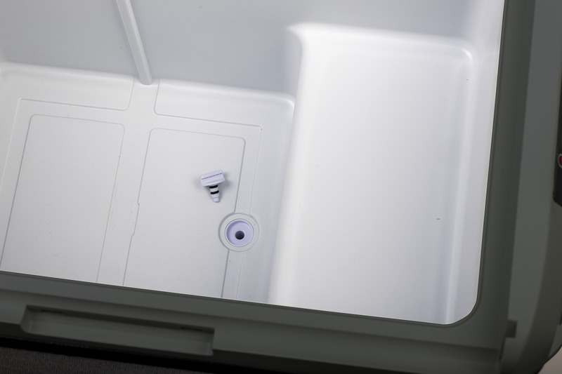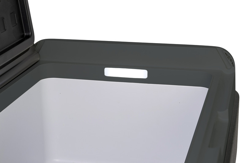 Auch im Alltag überzeugt die CrossCooler 40DZ mit durchdachten Details. Der abnehmbare Deckel lässt sich beidseitig öffnen, was das Beladen und Entnehmen extrem komfortabel macht – selbst bei wenig Platz im Fahrzeug. Das robuste Kunststoffgehäuse in modernem Schwarz/Dunkelgrau ist nicht nur langlebig, sondern passt optisch perfekt zu modernen Camper-Interieurs.