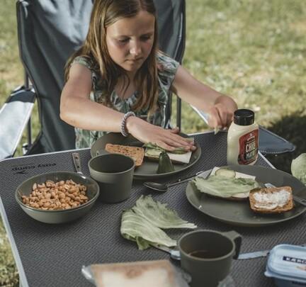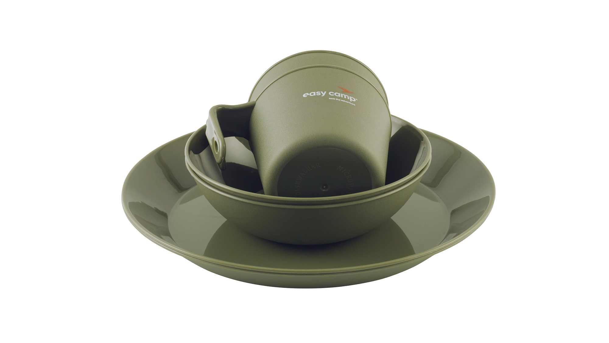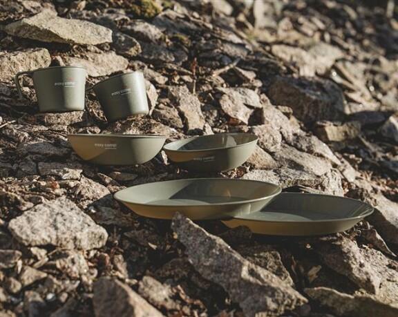 Das Moss 2 Dine Set von Easy Camp besteht aus 2 Bechern mit Henkel, 2 Tellern und 2 Schüsseln und deckt damit alle Mahlzeiten des Tages ab – vom Frühstückskaffee bis zum warmen Abendessen. Dank des cleveren, stapelbaren Designs lässt sich das komplette Geschirr platzsparend verstauen. Ideal, wenn im Bus, Zelt oder Rucksack jeder Zentimeter zählt.