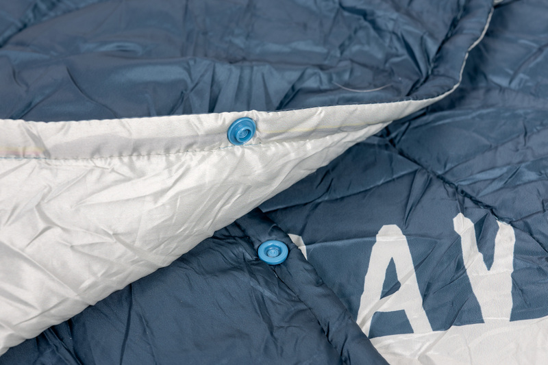 Ein echtes Highlight sind die seitlich eingenähten Druckknöpfe: Damit lässt sich die Decke ganz einfach um die Schultern legen und fixieren. So wird aus der klassischen Campingdecke im Handumdrehen ein wärmender Outdoor-Umhang – ideal, wenn man noch draußen sitzen möchte, aber die Temperaturen langsam fallen.