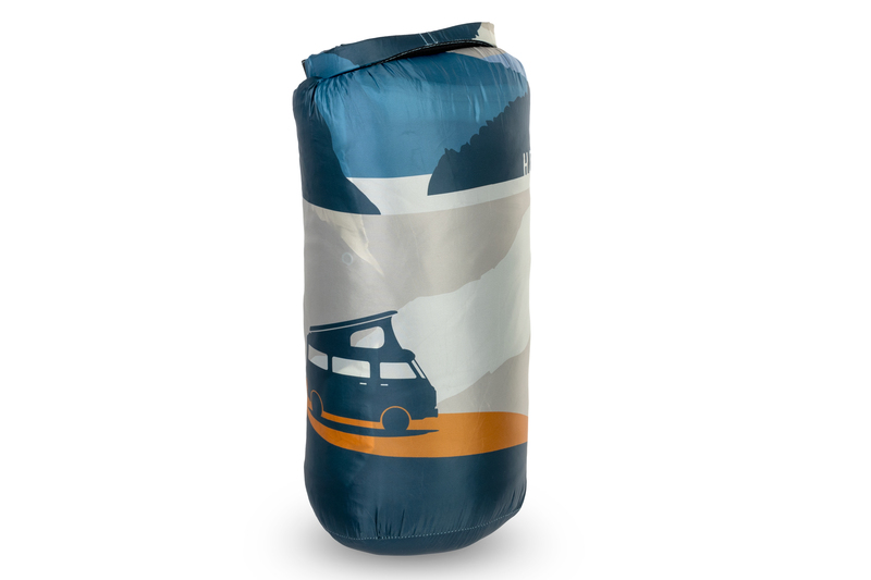 Auch beim Transport überzeugt die HOLIDAY TRAVEL Decke auf ganzer Linie. Sie wird in einer praktischen Tragetasche mit Dry-Bag-Verschluss geliefert. Zusammengepackt misst sie nur ca. 35 x Ø15 cm und wiegt gerade einmal ca. 0,5 kg. Damit passt sie problemlos in jeden Camper, Rucksack oder Kofferraum.