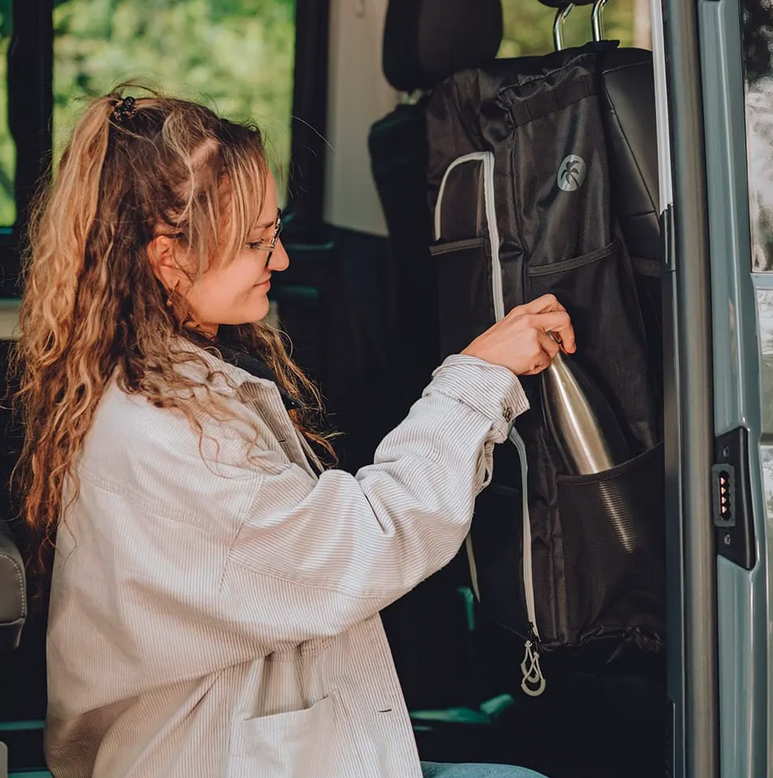 Kurz gesagt: Die seatBOXX Organizer Tasche ist eine einfache, clevere und richtig praktische Lösung für mehr Ordnung und Stauraum im Van – einmal montiert, willst du sie nicht mehr missen.