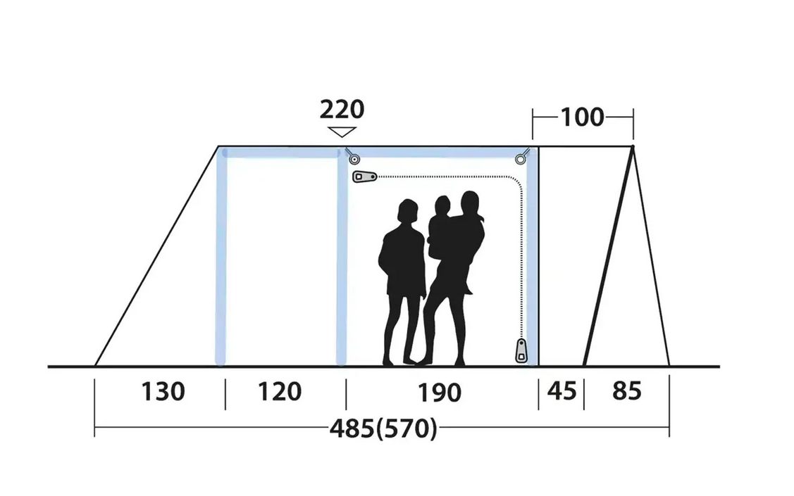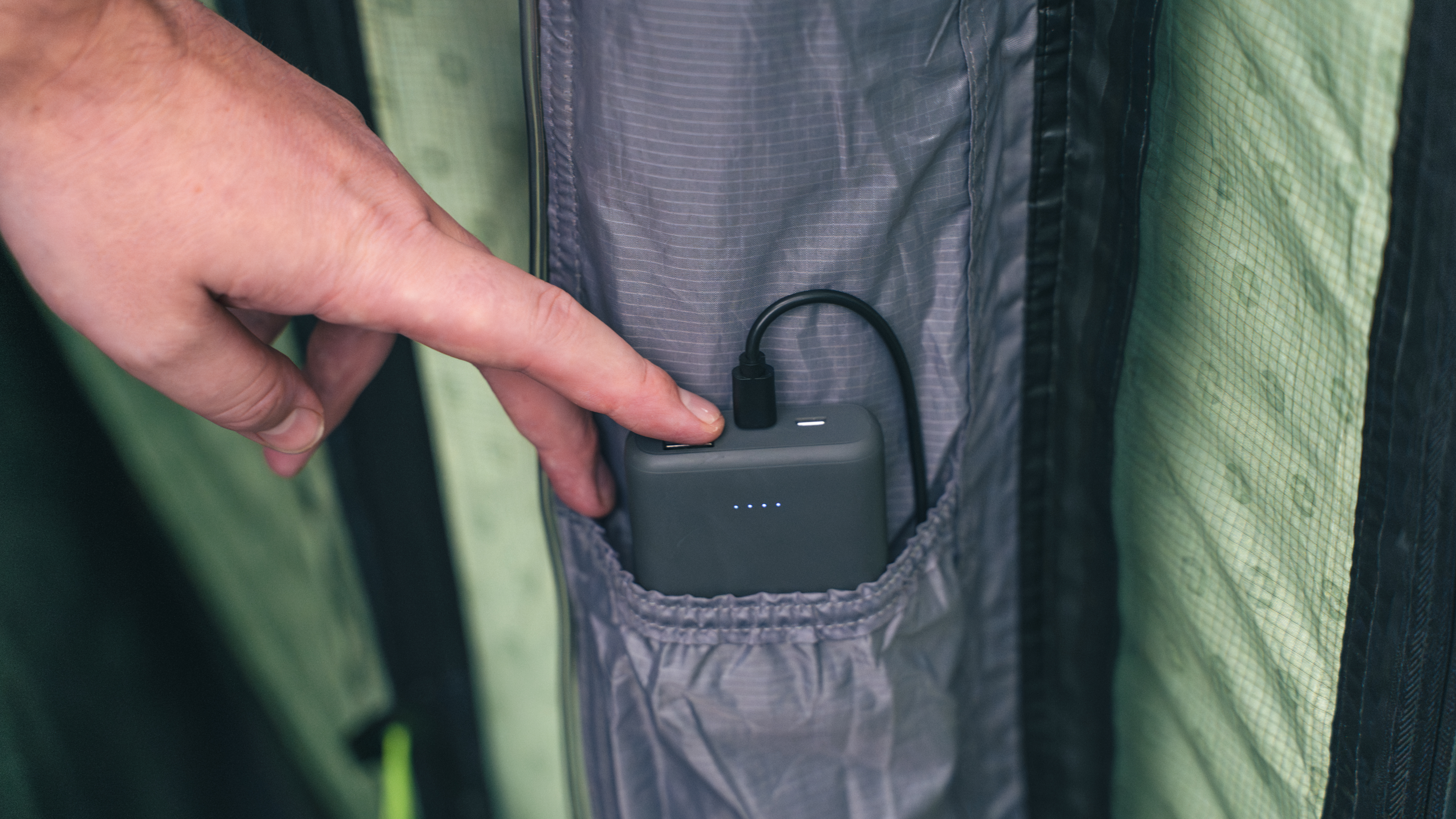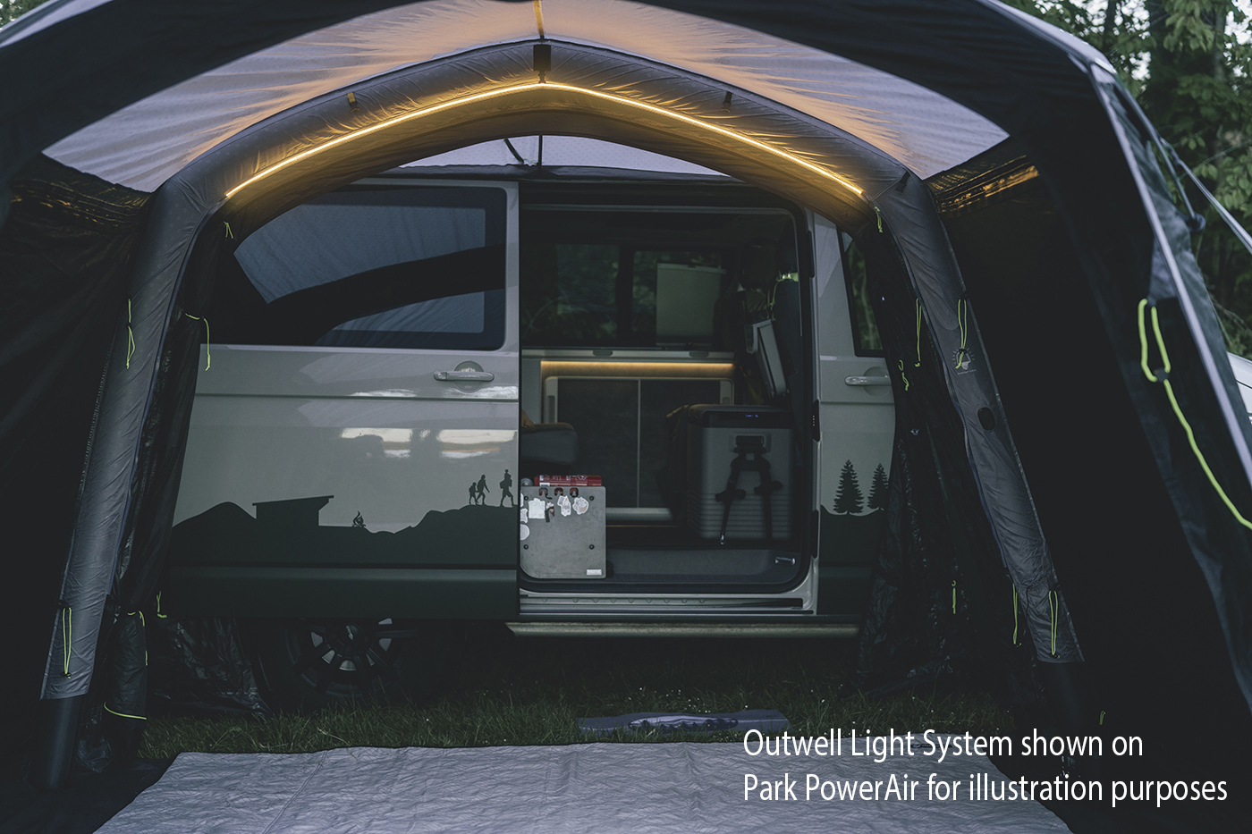 Ein echtes Highlight ist das integrierte Outwell Light System. Das per USB-C betriebene LED-Lichtband schafft sofort eine gemütliche Atmosphäre, ganz ohne zusätzliche Lampen. Dazu kommen viele clevere Details wie das HookTrack-System für Zubehör, der schwellenlose Easy-Access-Eingang und die wasserdichten Reißverschlüsse mit Dry-Zip-System.