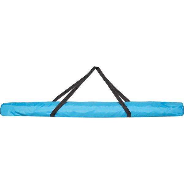Moderner Strand und Sonnenschirm mit kompaktem Packmaß. Ausgestattet mit Aluminiumstiel und einem hochbelastbaren, UV-stabilen Schirmbezug. Zusätzliche Schlaufen an den Enden der Streben ermöglichen eine Abspannung gegen starken Wind. An der Unterseite des Sonnenschirms befinden sich 2 Haken und ein praktisches Netz für Utensilien. Durch die verstellbare Seitenneigung bietet der Schirm besten Sonnenschutz zu jeder Tageszeit. Inklusive Tragetasche.