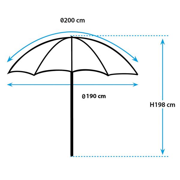 Der Brunner Sun Parasol 200 ist ein hochwertiger Sonnenschirm für Garten, Strand und Camping. Mit einem Durchmesser von 190 Zentimetern und einer Höhe von 198 Zentimetern bietet er großzügigen Schatten an heißen Tagen. Das strapazierfähige Schirmmaterial besteht aus 100 Prozent Polyester und ist auf der Innenseite mit Aluminium beschichtet – für optimalen Sonnenschutz mit einem UV-Schutzfaktor von UPF 50.