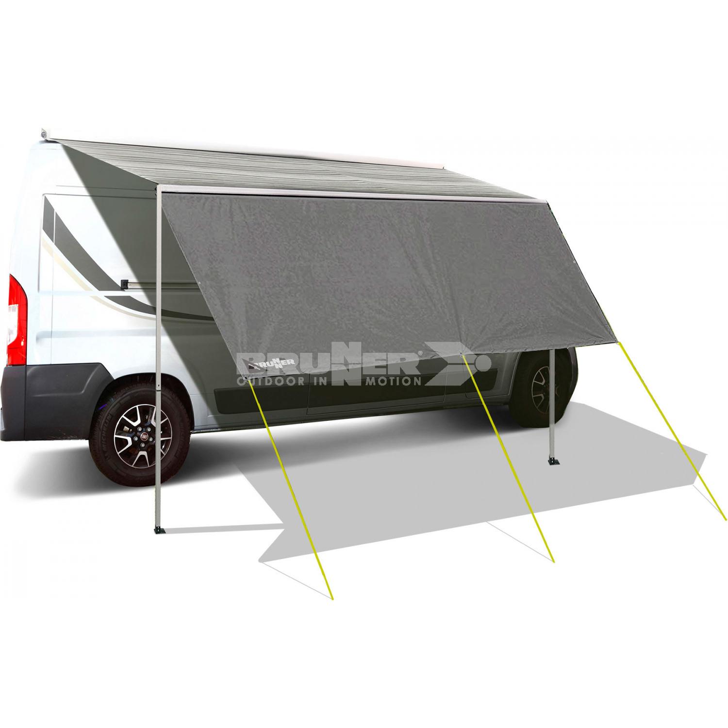 Komfortable Sonnensegel aus UV-beständigem Kunstgewebe. Rundum gesäumt, mit Ösen. Einfache Montage an der Kederleiste von Wohnwägen, Wohnmobilen, Kastenwägen oder Bussen. Geeignet für Fiamma-, Thule- und Omnistor-Markisen. Mit Aufstellstangen, Heringe und Abspannleinen.