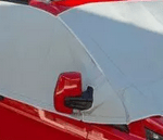 Die Montage gelingt dank Klettverschlüssen und seitlichen Türlaschen spielend leicht. Die Laschen werden in die Türen eingeklemmt, was für perfekten Sitz und zusätzliche Diebstahlsicherheit sorgt. Ein besonderes Highlight: Die Windschutzscheibe lässt sich per Klettverschluss öffnen, sodass du Tageslicht genießen kannst, ohne den gesamten Thermoschutz zu entfernen.