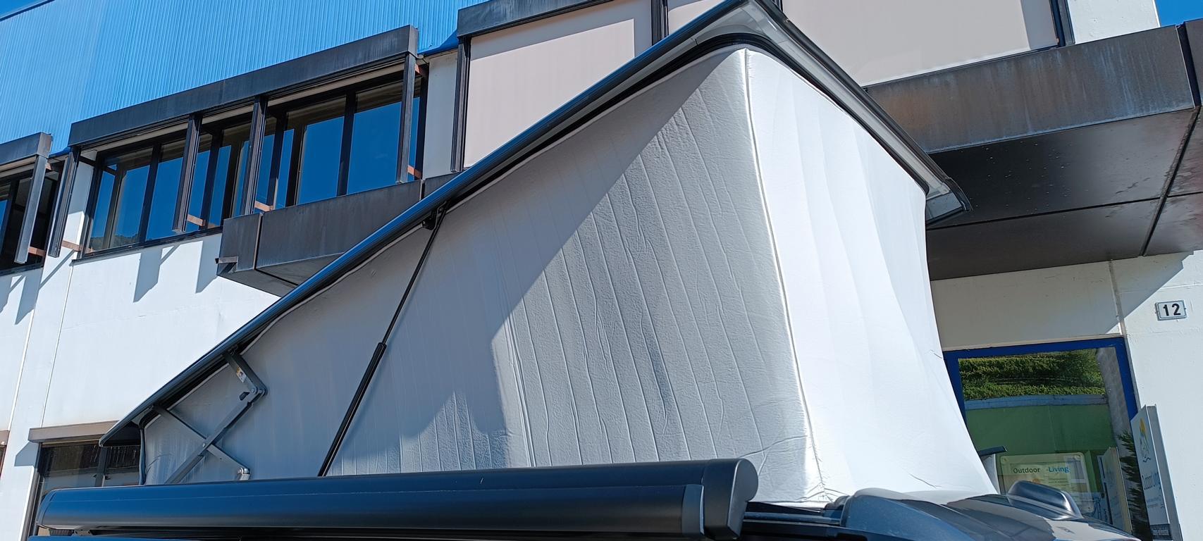 Sehr wärmedämmendes Material mit 8mm Dicke, innen und aussen mit reißfestem Multistrat Schutzfilm bezogen. Passt exakt in die Öffnung zwischen Dachschale und Originaldach bei offenem Schlafdach. Sehr effektive Wärmedämmung auch bei strengen Minusgraden ist das Schlafen im Dach kein Problem. Durch die Aussendämmung wird eine Kondesation im Innenraum praktisch vermieden, der Zeltbalg bleibt trocken und geschützt und im Innern entsteht eine wohlige Wärme. Ganzjährig benutzbar, schützt den Zeltbalg vor Kälte, Hitze, Nässe und Sonnenstrahlung. Sehr einfache Montage, liegt passgenau an und wird einfach an einer Ecke mit Klett verschlossen. Wird in praktischem Packsack geliefert.