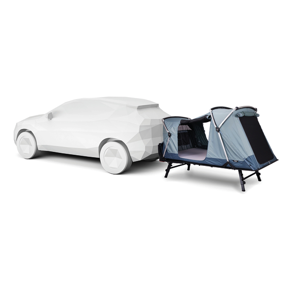 Ein weiteres starkes Argument: Trotz Heckmontage bleibt der Kofferraum jederzeit zugänglich, da das Zelt abkippbar ist. Außerdem ist das System abschließbar und beeinflusst den Kraftstoffverbrauch kaum – ein klarer Vorteil gegenüber klassischen Dachzelten.