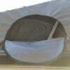 Zwei seitliche Fensteröffnungen mit Reißverschluss sorgen für Licht und Frischluft im Innenraum. Das hochwertige Polyester-Gewebe (150T) ist absolut wasserdicht, gleichzeitig atmungsaktiv und trocknet nach Regen extrem schnell. Getestet auf Wassersäule – kein Durchsickern. Und das Beste: